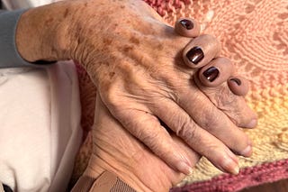 The nurses settled her into a soft lounge chair and covered her with the burgundy and pink afghan my great-aunt crocheted for her decades ago, probably…